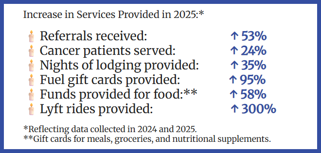 🕯️We received over 2,000 referrals from Central Ohio medical institutions requesting support for cancer patients who are in need.